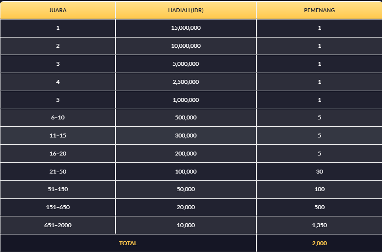 5. Pembagian hadiah dilakukan maksimal 2×24 jam setelah periode harian berakhir.